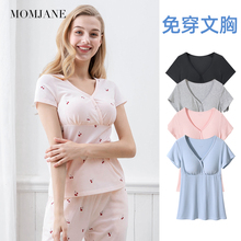 哺乳短袖t恤上衣孕妇睡衣产后喂奶衣夏季薄款月子服套装免穿内衣(49.9元)