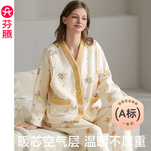 芬腾纯棉秋冬季长袖空气棉夹层a类月子服保暖孕妇产后哺乳睡衣女(169元)