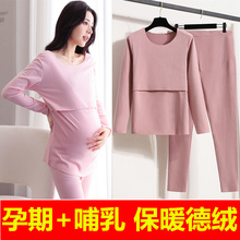 孕妇秋衣秋裤套装加绒保暖衣秋冬季产后哺乳喂奶月子服睡衣孕妇装(49.9元)
