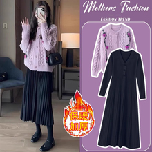 孕妇连衣裙套装秋冬2024新款紫色针织外套打底裙宽松时髦两件套女(79元)