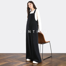 孕妇背带裤秋冬款灯芯绒加绒加厚大码宽松显瘦休闲直筒阔腿长裤女(184元)