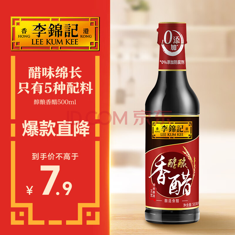 李锦记 醇酿香醋500ml【0添加防腐剂】固态发酵 凉拌海鲜饺子点蘸拌(7.9元)