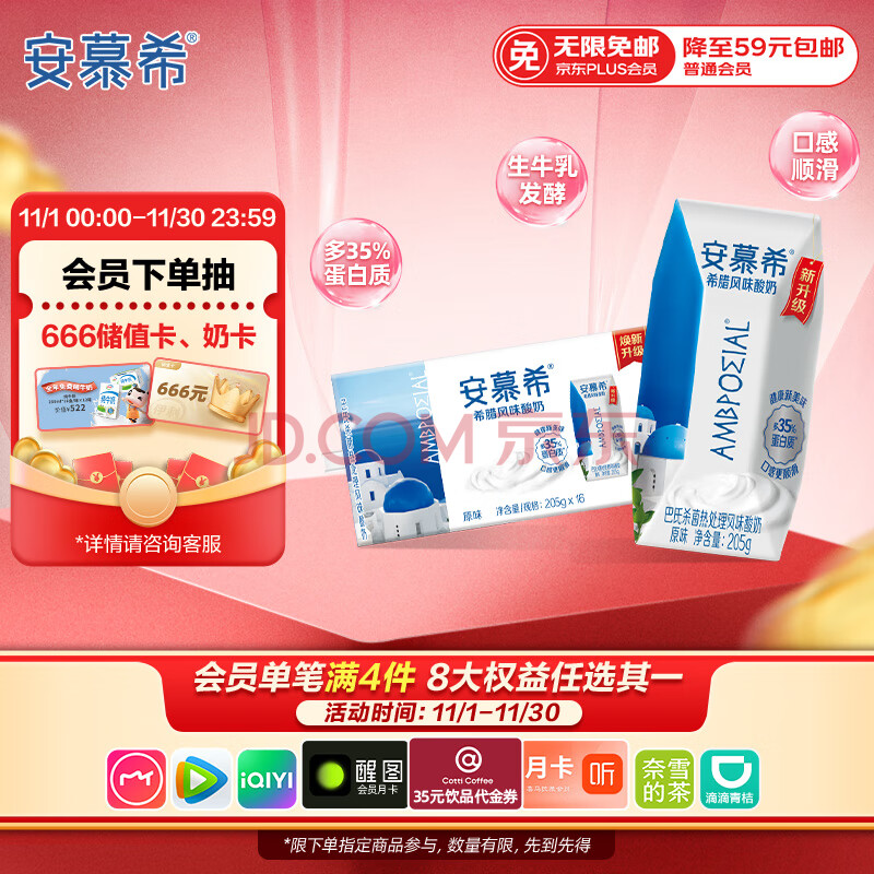 伊利安慕希希腊风味早餐酸奶原味205g*16盒 礼盒装(41.9元)
