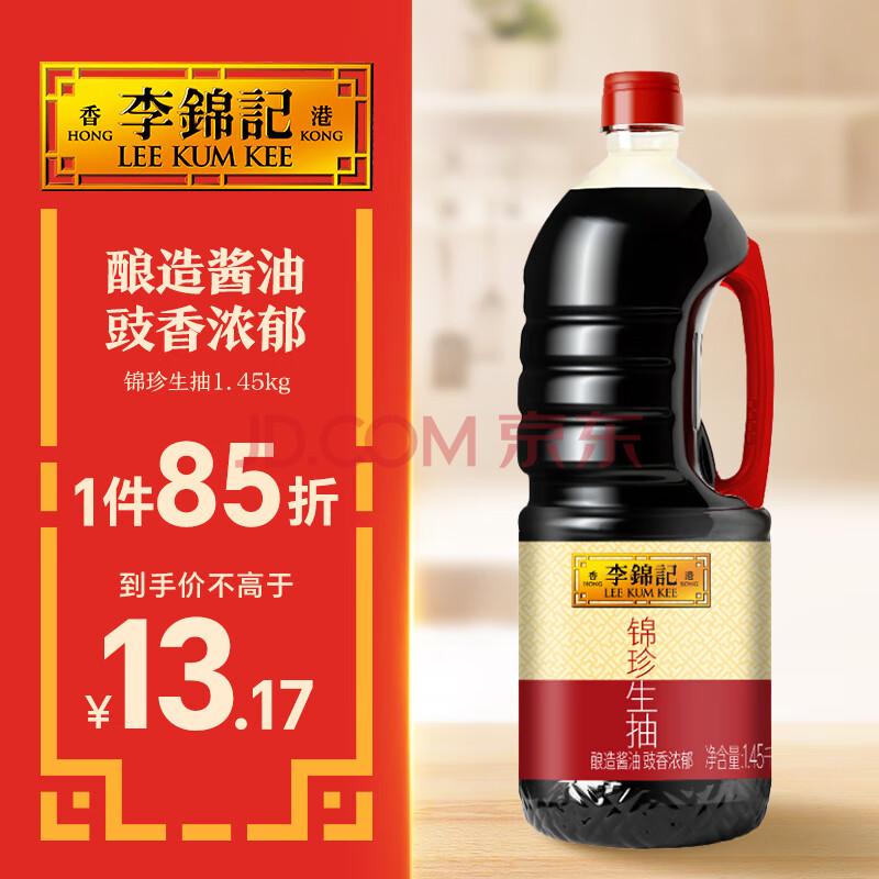 李锦记 锦珍系列 锦珍生抽1.45kg 非转基因黄豆 拌炒家用调味 酱油(15.5元)