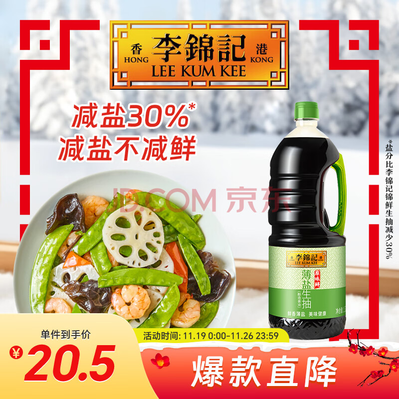 李锦记 薄盐生抽原味鲜1.52kg 【减盐】 美味健康之选 酱油(20.5元)