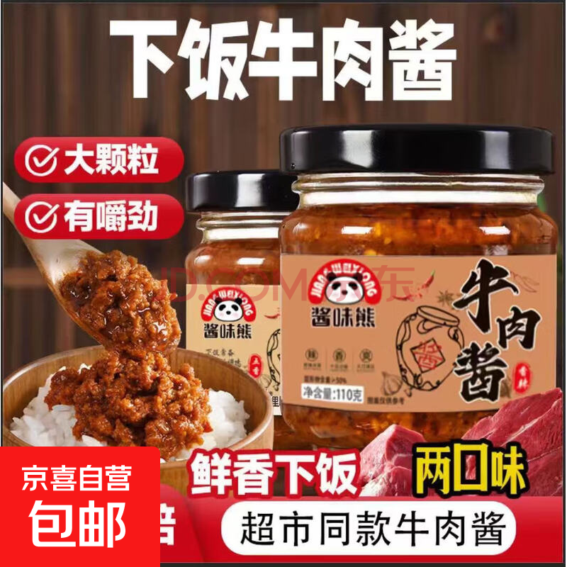 全网热销!下饭菜拌饭拌面调味酱家庭必备五香香辣牛肉酱110g*1瓶 (15.8元)
