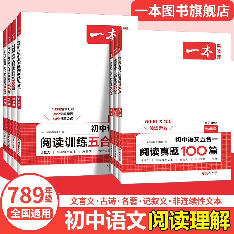 一本初中语文阅读理解五合一阅读训练语文真题100篇七八九年级现代(49.8元)