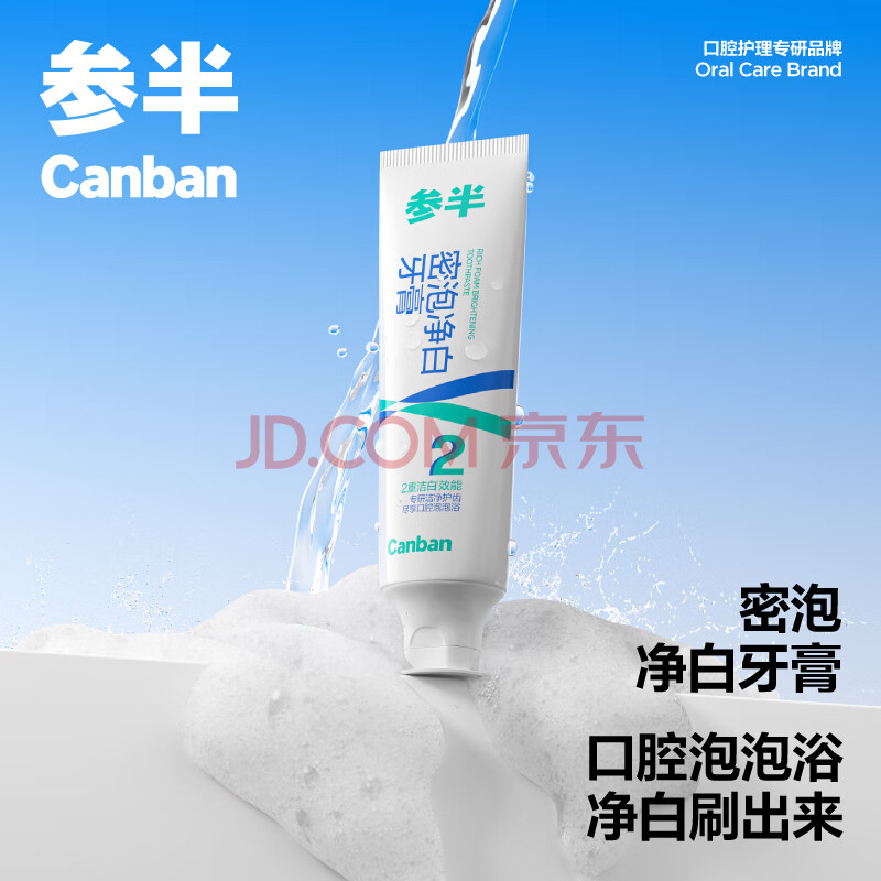 参半密泡净白牙膏 净白清洁去牙垢密泡牙膏60g*1(15.9元)