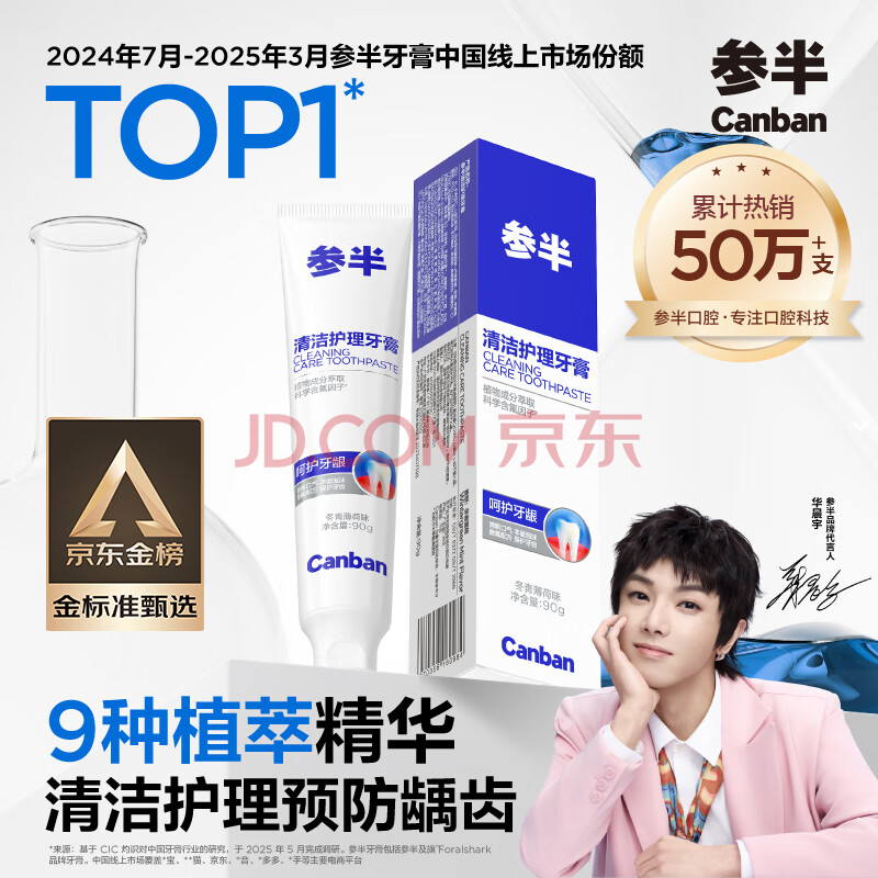 参半清洁护理牙膏 益生菌清新口气呵护牙龈 冬青薄荷味90g(14.9元)