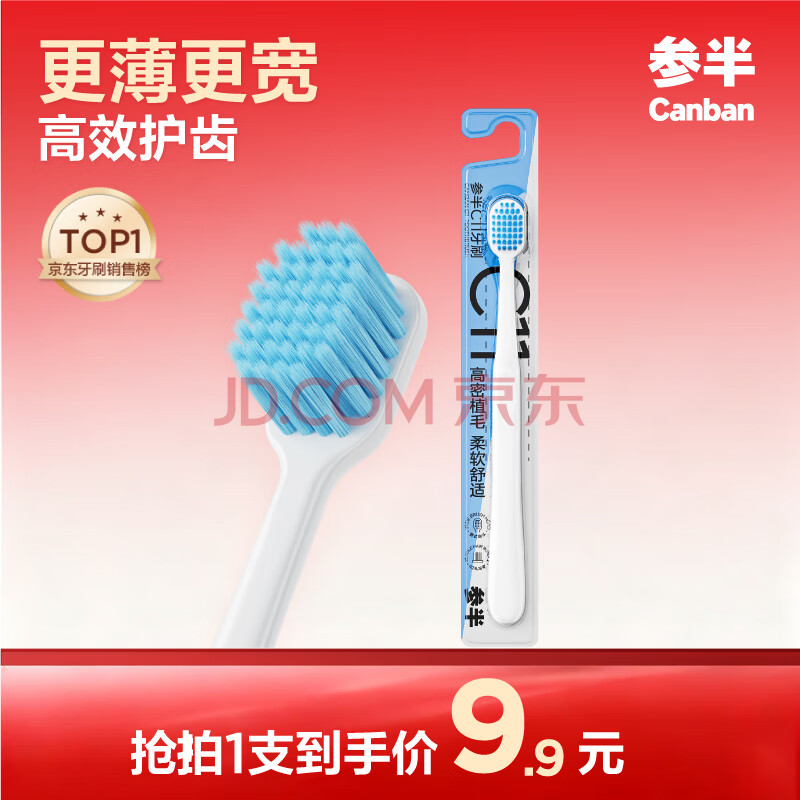 参半C11高密植宽头软毛牙刷 护龈纤细毛牙龈清洁 1支装(9.9元)