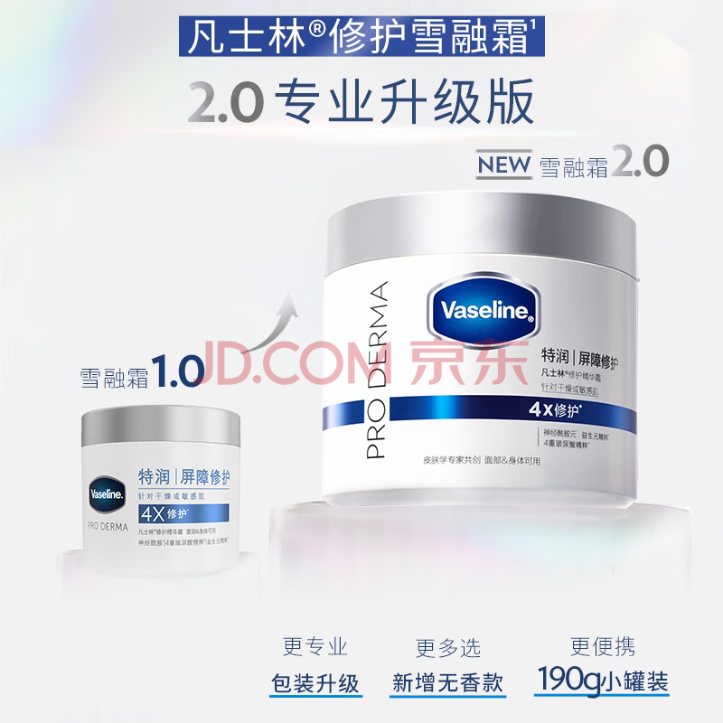 凡士林【章昊同款】特润修护无香雪融霜保湿身体乳温和面霜大白罐3(99元)