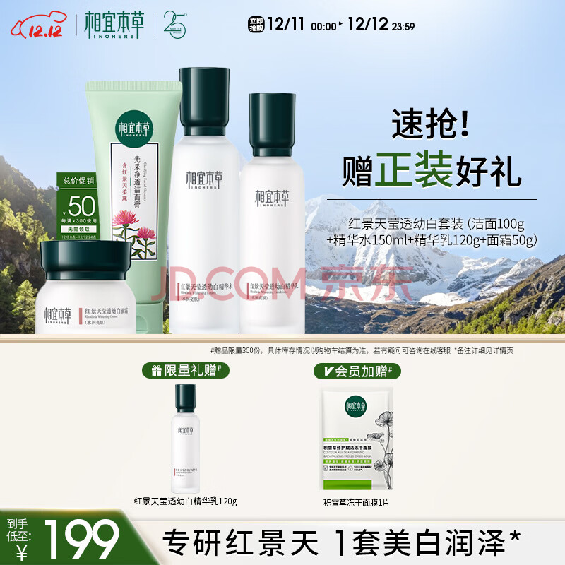 相宜本草【热卖商品】红景天莹透幼白护肤套装礼盒(洁+水+乳+霜)(199元)