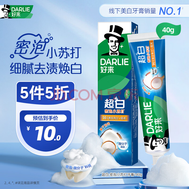 好来(DARLIE)(原黑人)小苏打超白牙膏40g 小巧清新口气 款式随机(19.9元)