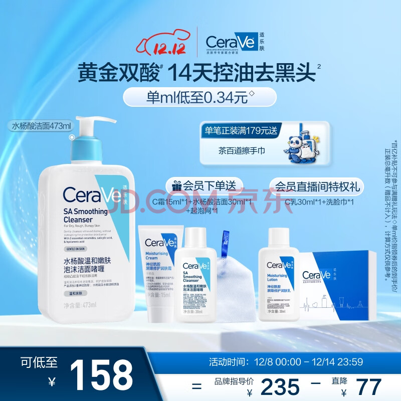 适乐肤(CeraVe)【油痘肌救星】水杨酸洗面奶473ml(男女士控油祛(124元)