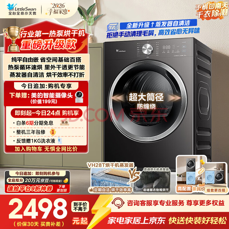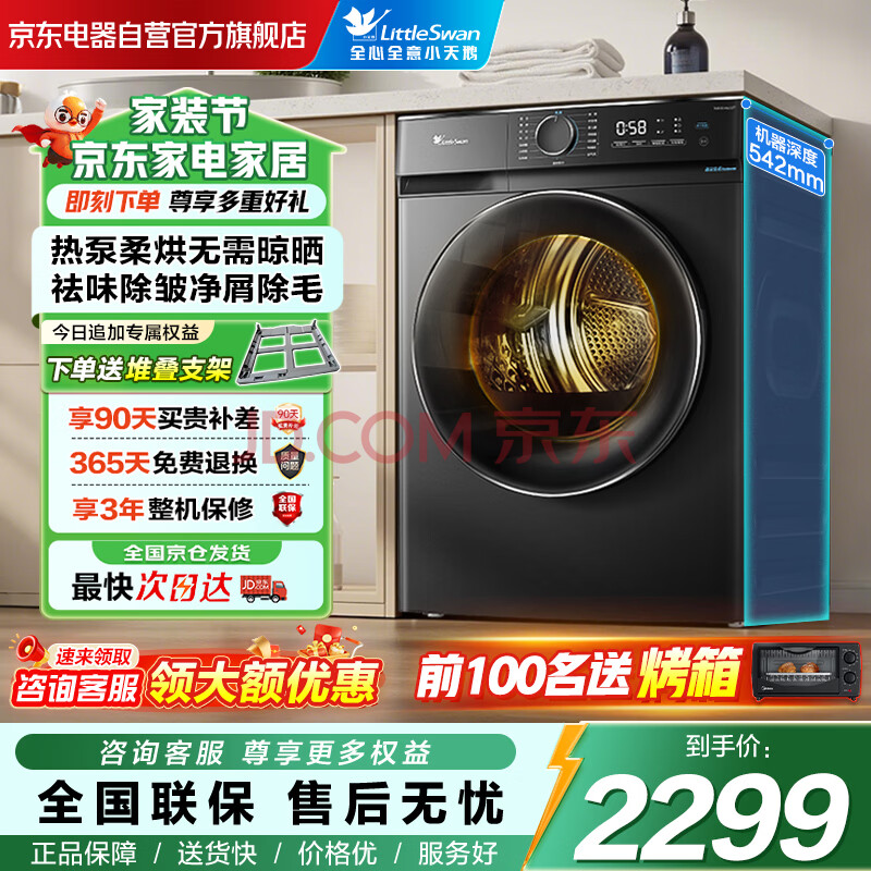 小天鹅(LittleSwan)10KG热泵烘干机家用大容量干衣机 AI正反转超(2206.6元)
