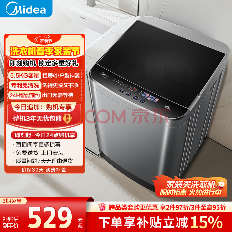 美的(Midea)波轮洗衣机全自动 3KG 迷你内衣婴儿洗衣机 健康除螨(641.75元)
