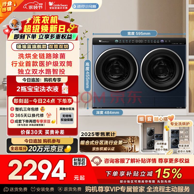 小天鹅(LittleSwan)迷你小乌梅 双筒分区洗 2KG洗烘一体 TNDD20-(2294.15元)