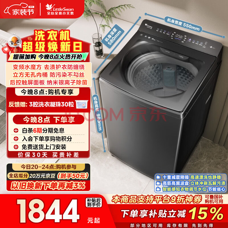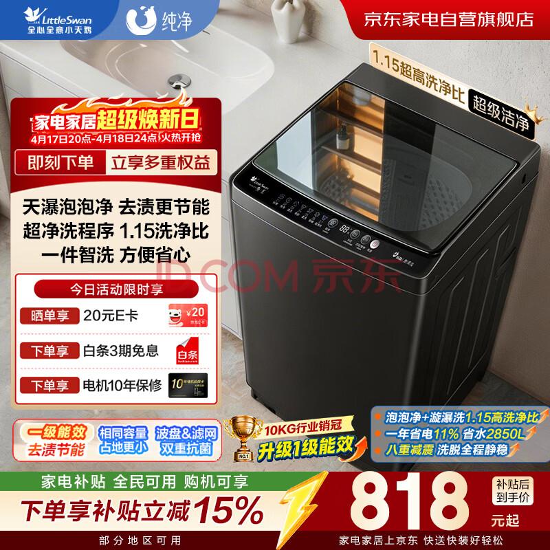 小天鹅波轮洗衣机全自动家用10公斤大容量 抗菌除螨 超净洗 强去污(903元)