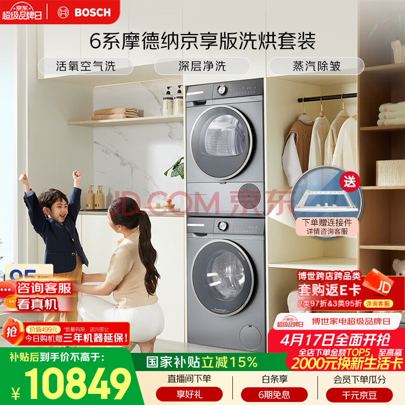 博世(BOSCH)【6系摩德纳京享版】10+10KG大容量滚筒洗烘套装 活氧(10848.9元)