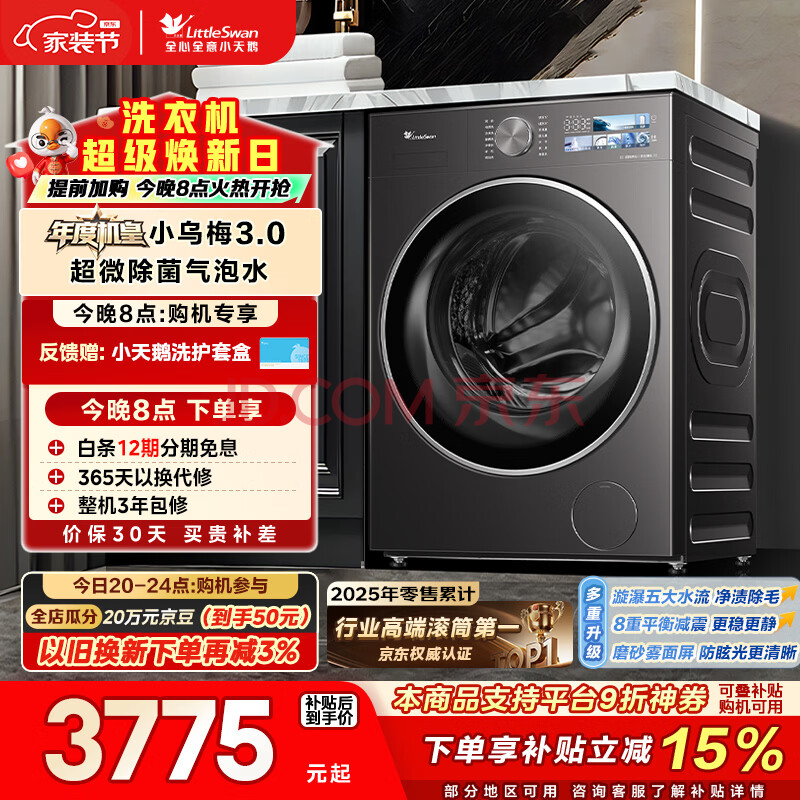 小天鹅(LittleSwan)年度机皇小乌梅3.0 滚筒洗衣机全自动 10KG大(3283.38元)