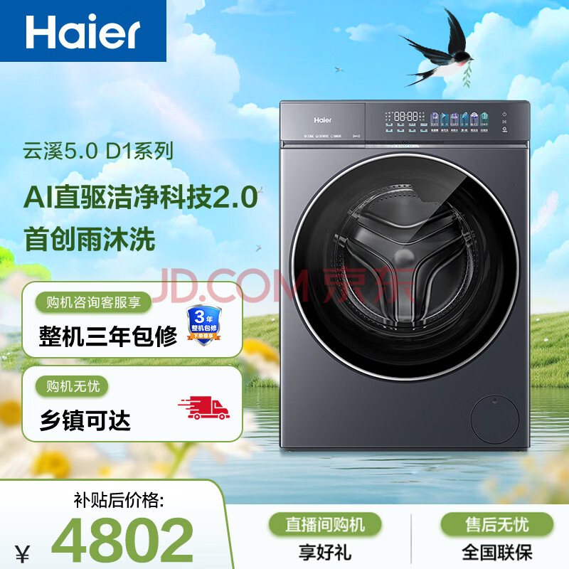海尔(Haier)云溪5.0 AWE同款 滚筒洗衣机全自动单洗家用 12公斤超(4799.18元)