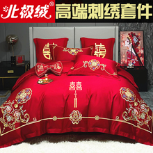 北极绒中式婚庆四件套红色刺绣婚房婚礼绣花喜被结婚被套床上用品(128元)