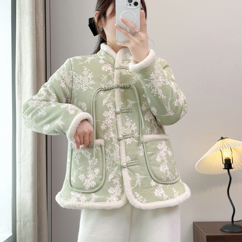 花棉袄女冬季新款东北大花棉衣加绒加厚中国风盘扣小个子碎花棉服(86.2元)