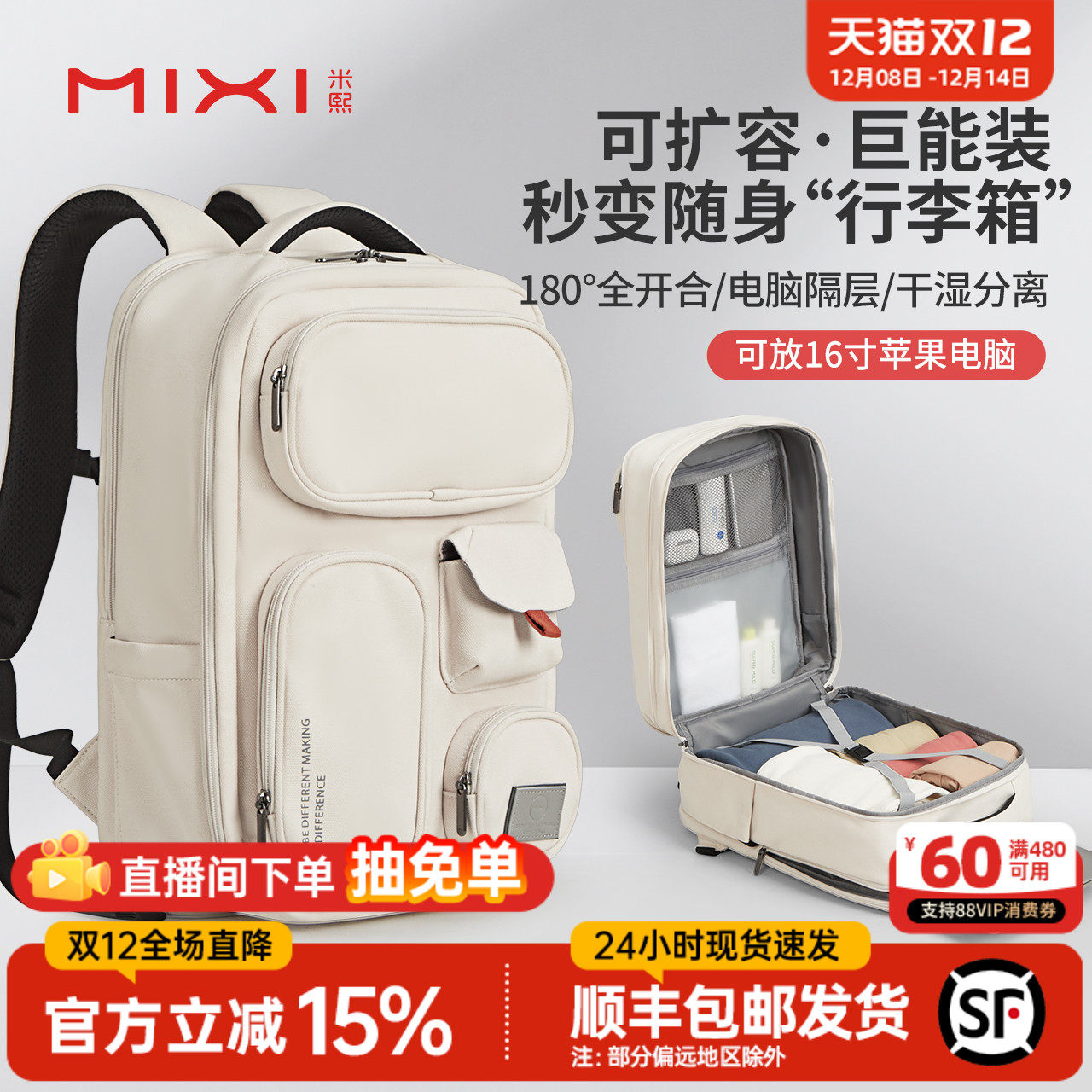 米熙旅行背包双肩包女2025新款户外电脑包男生大容量短途出差轻便(169元)