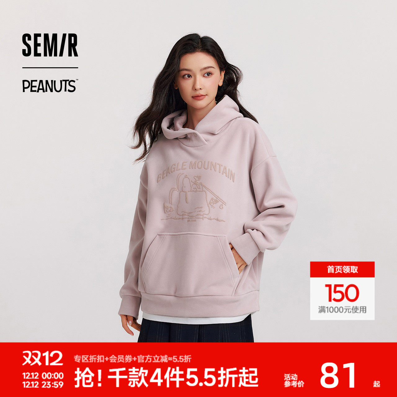 森马史努比系列卫衣女中长款假两件女装冬季外套摇粒绒连帽上衣(89元)