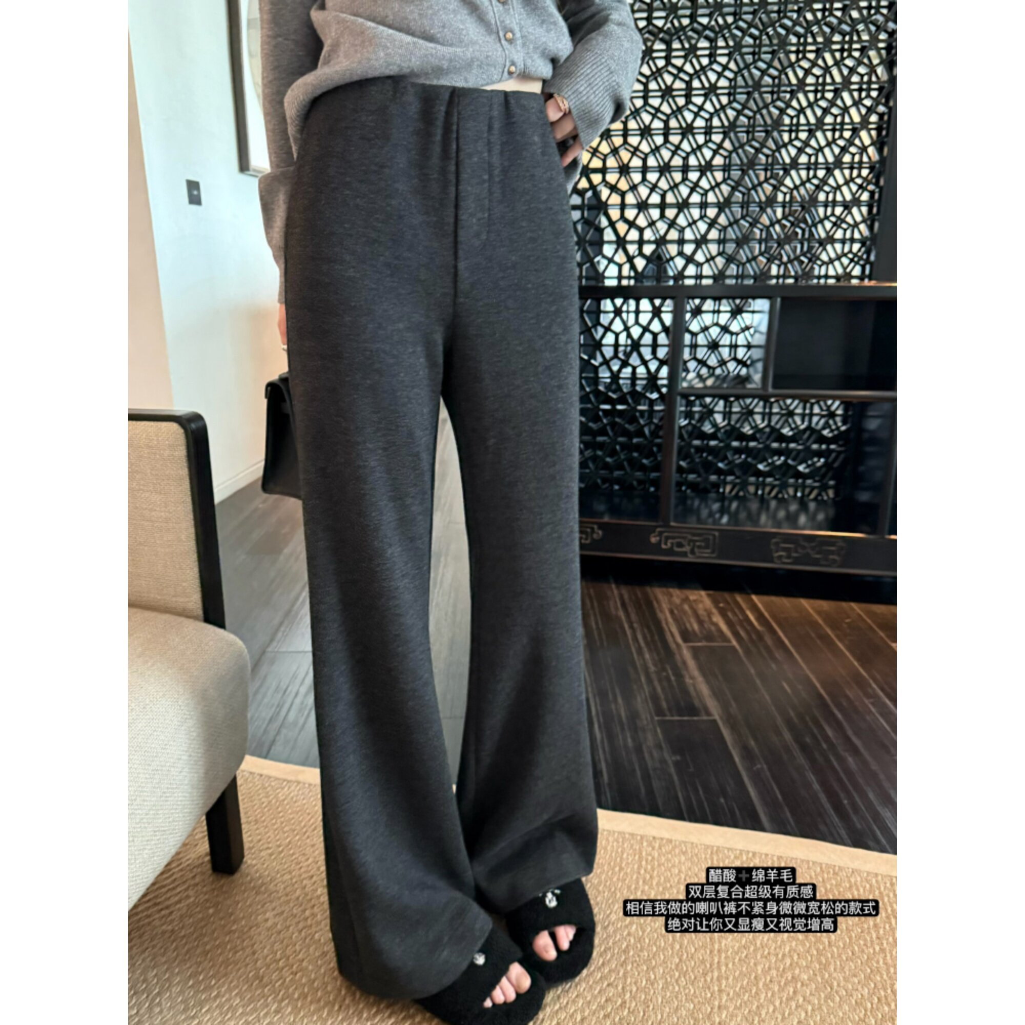 superniniyy 本期主推显腿直显高微宽松醋酸绵羊毛双层复合微喇裤(126元)
