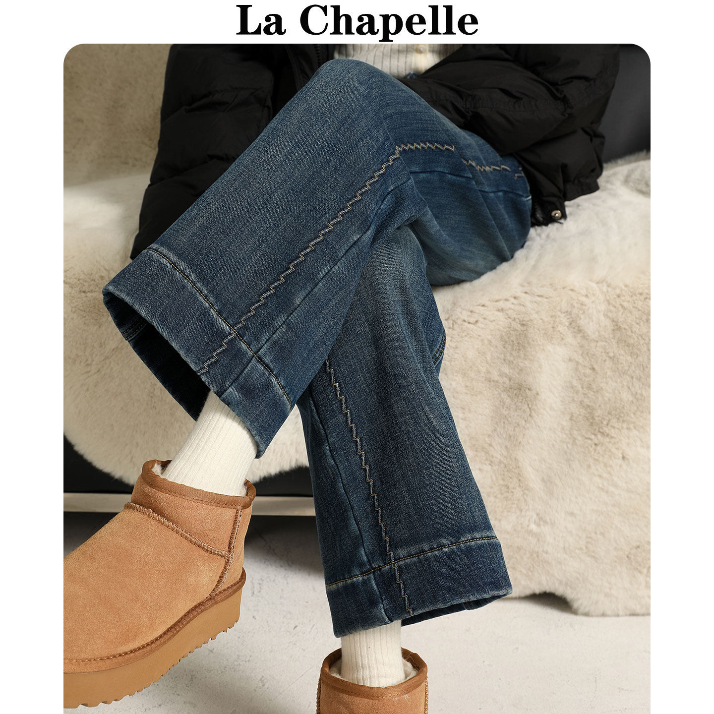 拉夏贝尔复古阔腿牛仔裤女秋冬2025年新款加绒小个子九分直筒裤子(87.9元)