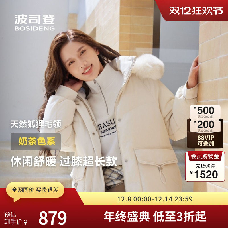 【推荐】【狐狸毛领】波司登女中长款可脱卸帽时尚休闲羽绒服正品(879元)