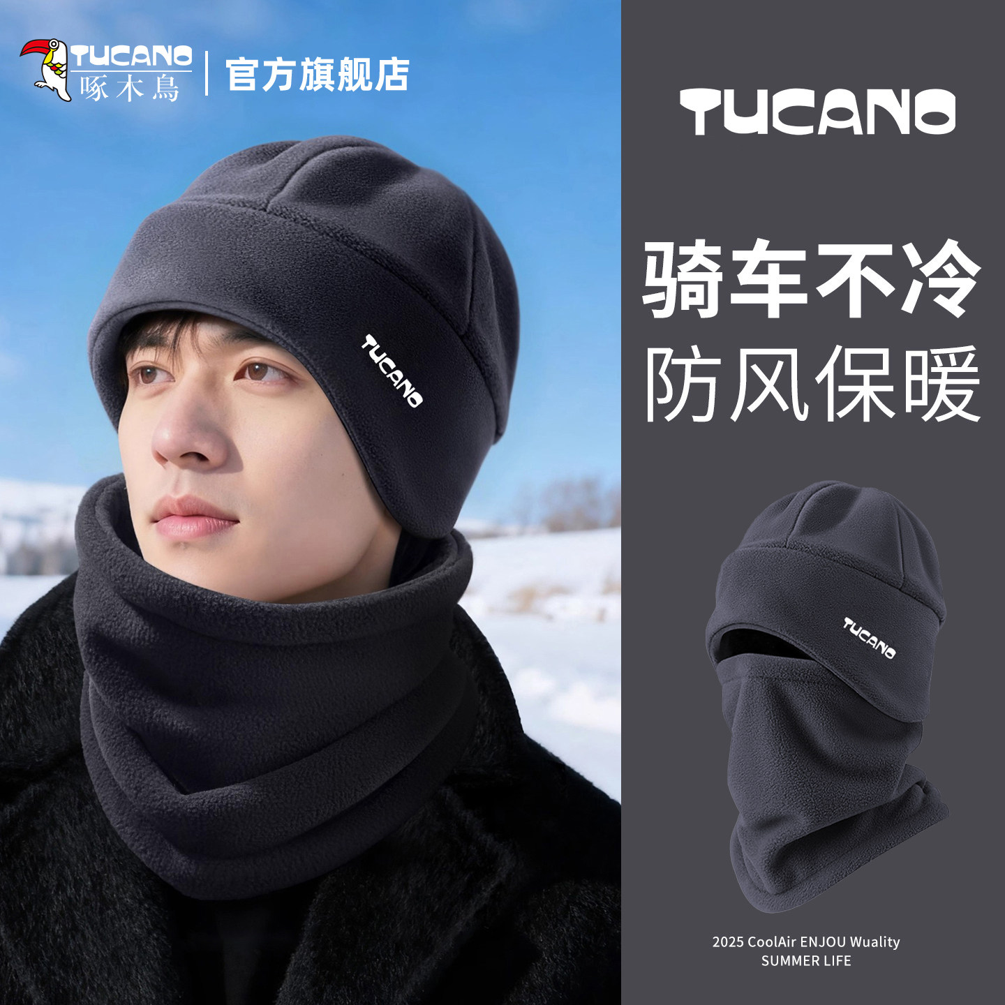 啄木鸟套头帽子男2025冬季新款户外加绒加厚保暖护耳护颈帽子套装(35元)