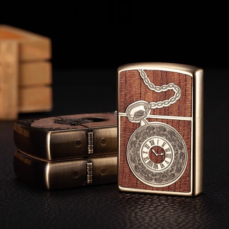 首领复古怀表木纹煤油打火机金色防风个性创意男士礼品礼盒装(39.9元)