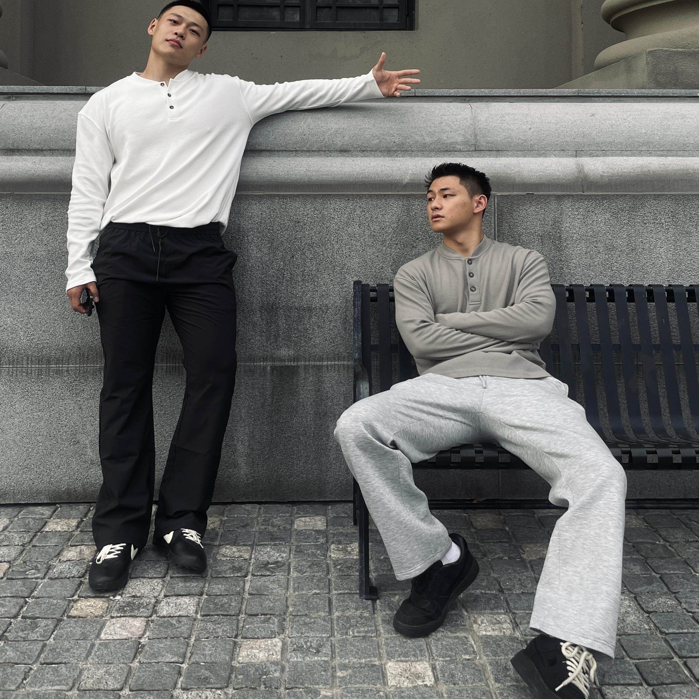 GTAL美式华夫格亨利领长袖男士纯色重磅宽松休闲高级感针织卫衣(99.9元)