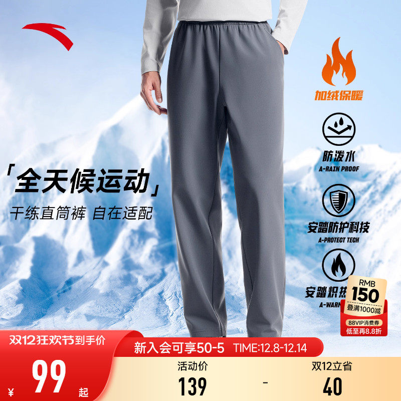 安踏加厚软壳运动长裤男士2025冬季新款加绒直筒裤通勤休闲男裤子(89元)