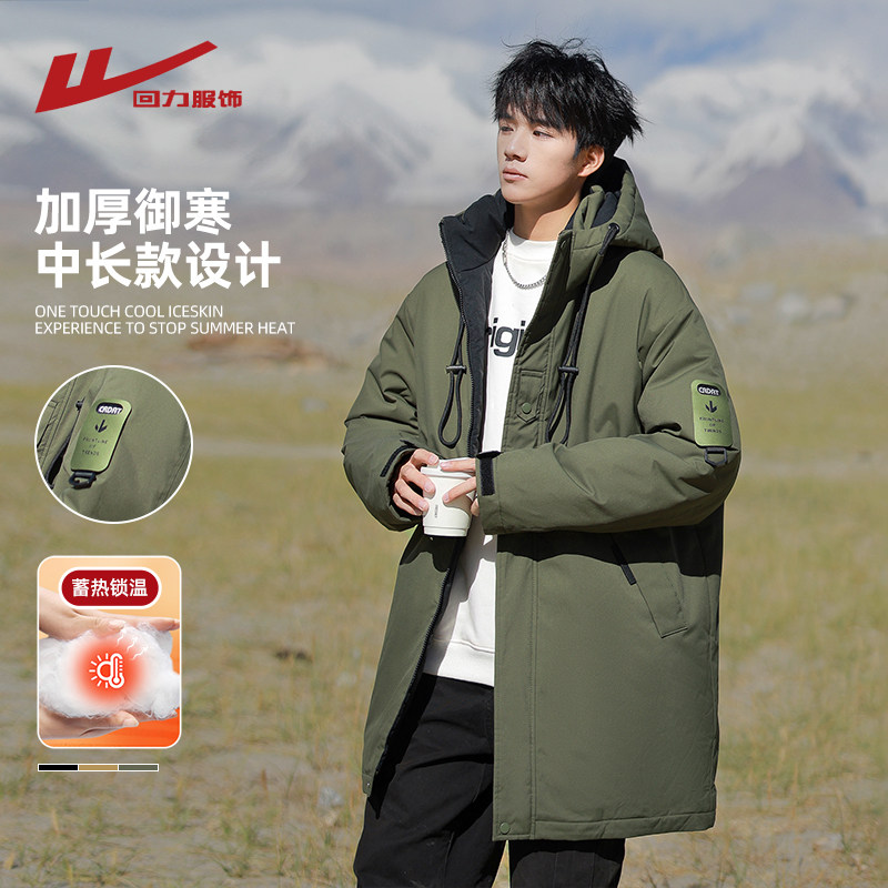 回力中长款冲锋棉衣男士冬季2025新款加厚保暖棉袄棉服军大衣外套(175.9元)