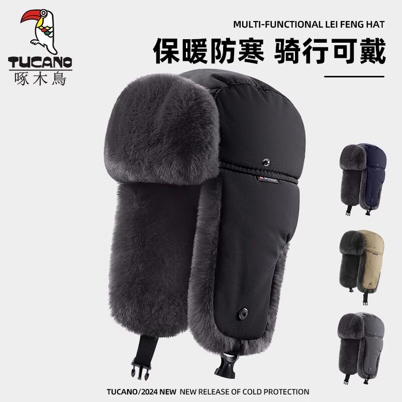 啄木鸟雷锋帽冬季男骑车防寒东北棉帽大头围护耳保暖加绒加厚帽子(36.8元)