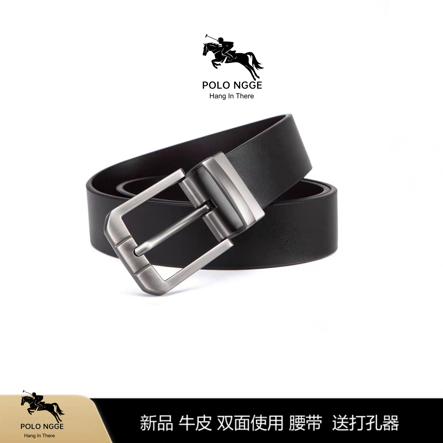 POLONGGE保罗皮带男士腰带商务休闲拉丝钢扣双面黑色皮带男裤腰带(16.3元)