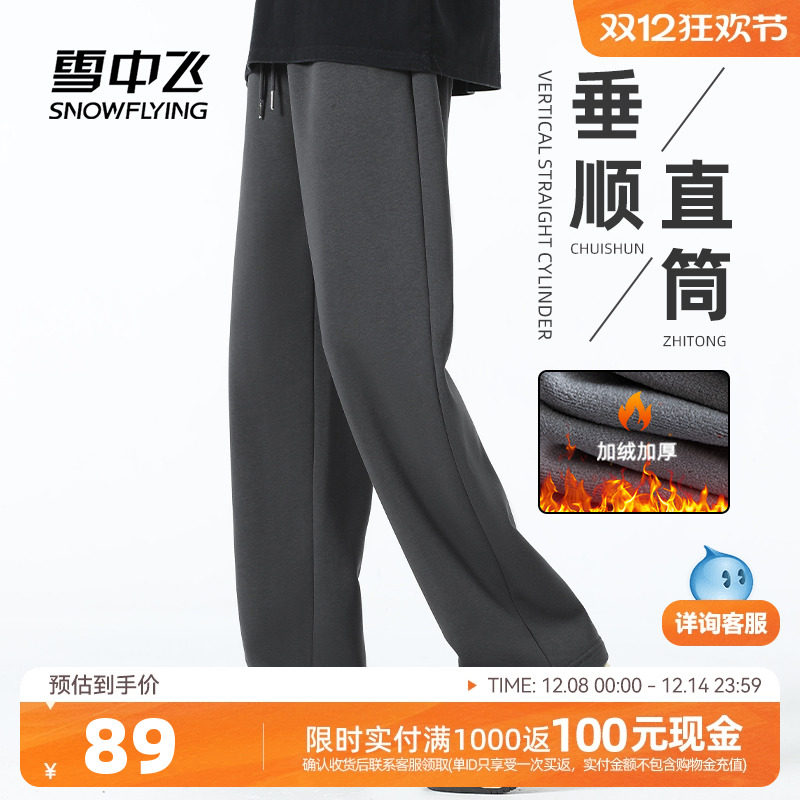 雪中飞加绒裤子男冬季2025新款深灰直筒男裤男士保暖加厚休闲裤PC(85元)