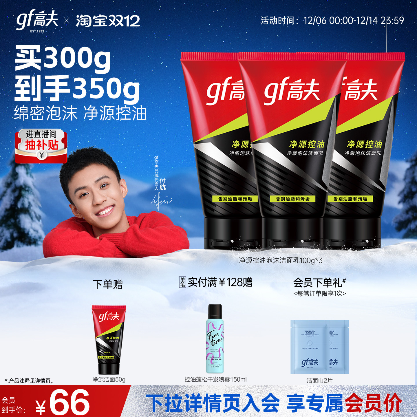 高夫男士洗面奶净源控油专用清洁清爽泡沫洁面乳护肤品官方正品(42元)