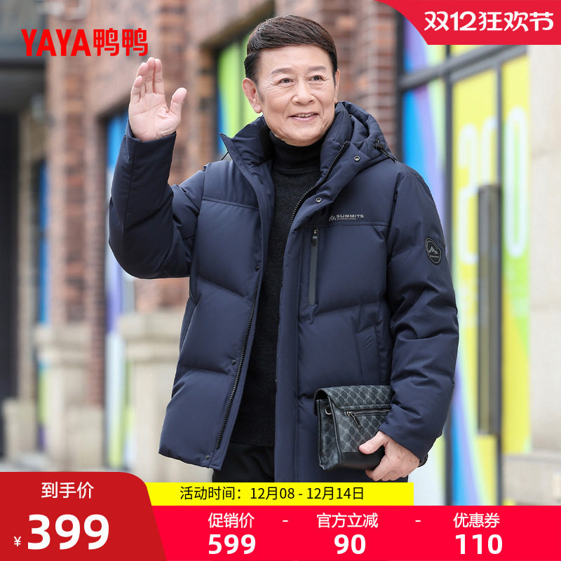 鸭鸭羽绒服男2025冬中老年爸爸装连帽短款时尚加厚防风保暖外套M(399元)