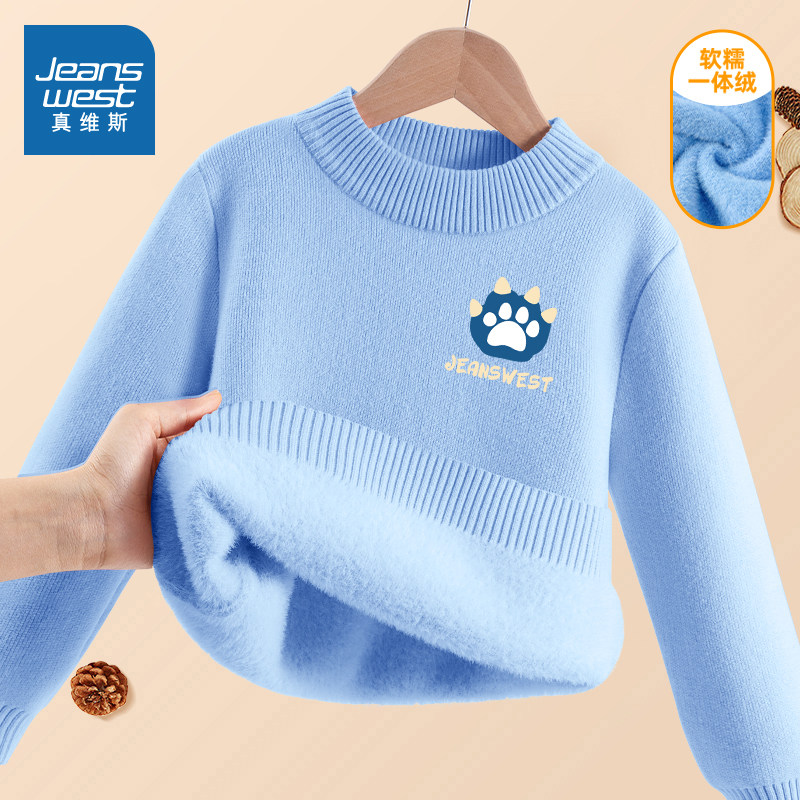 真维斯童装男童加绒毛衣中大童秋冬款一体绒针织衫儿童加厚保暖衣(49.9元)