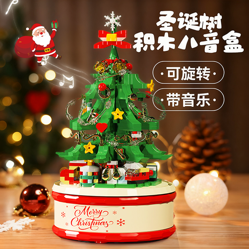 圣诞树旋转八音盒儿童拼装积木玩具送男生女生闺蜜圣诞节生日礼物(16.5元)
