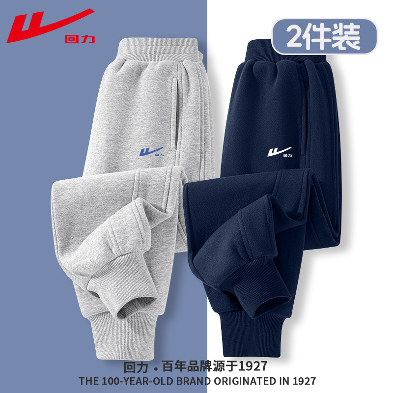 回力童装男童裤子春秋款2025新款大童秋季加绒卫裤儿童运动裤秋装(49.9元)