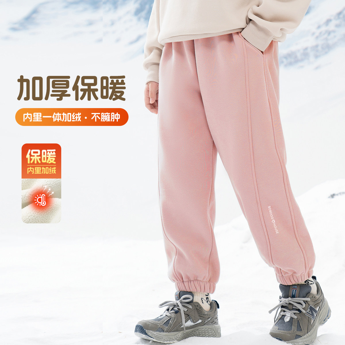 巴布豆童装儿童加绒加厚卫裤2025冬季新款男女童保暖运动裤束脚裤(29.9元)