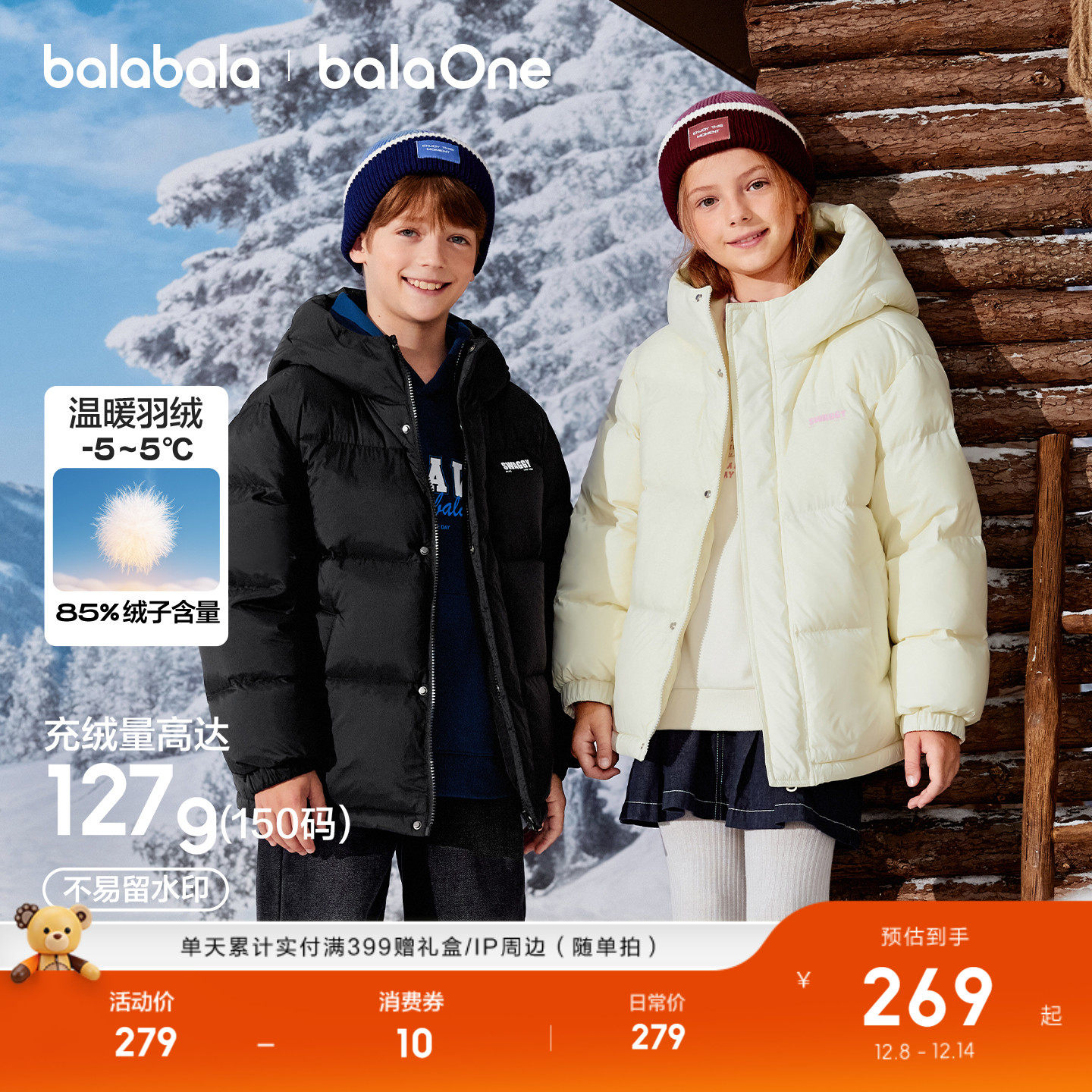 巴拉巴拉童装儿童羽绒服男女童2025冬装外套上衣温暖面包服保暖潮(269元)