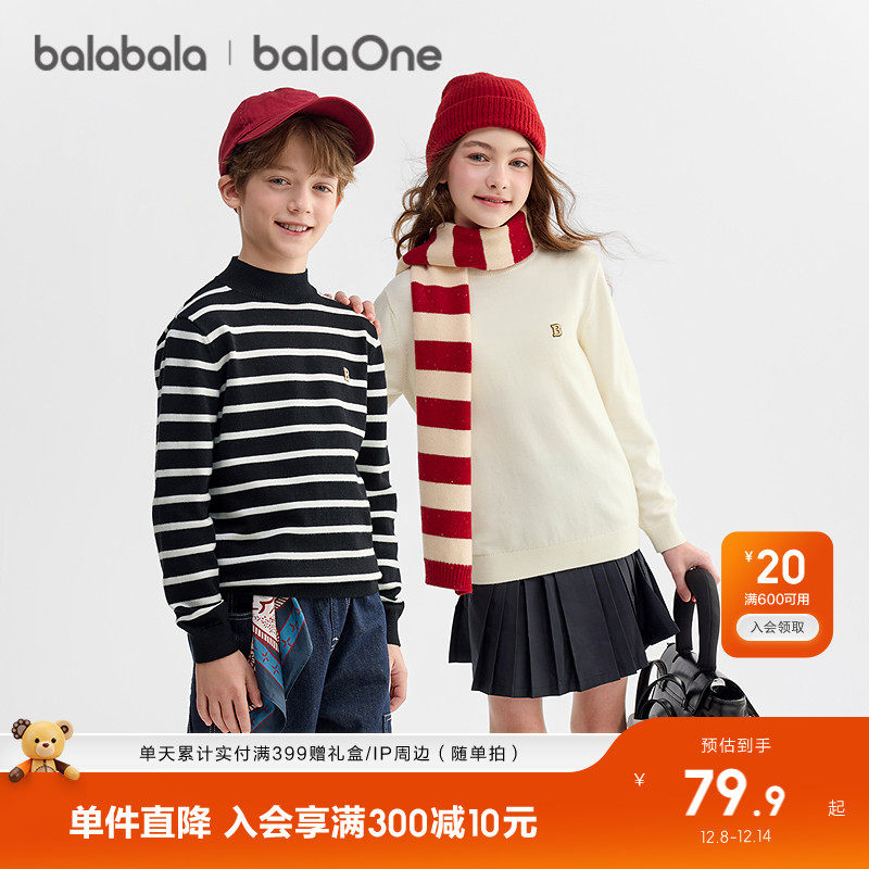 巴拉巴拉童装儿童毛衫女童2025新款冬装毛衣男童打底衫针织衫上衣(79.9元)
