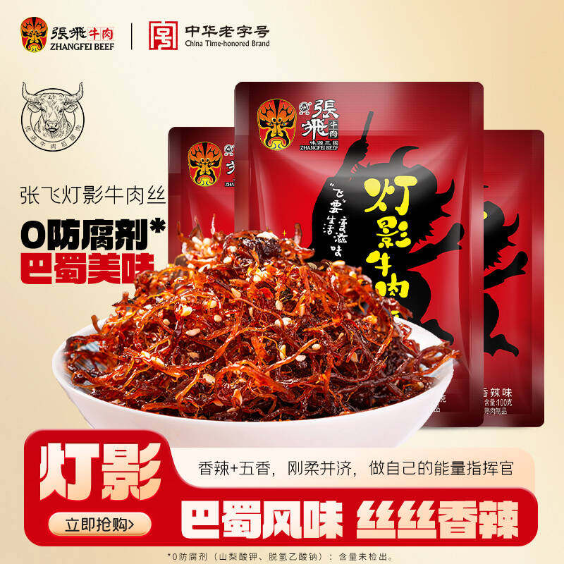 张飞灯影牛肉丝四川成都特产牛肉干上班充饥小零食休闲小吃食品(23.35元)