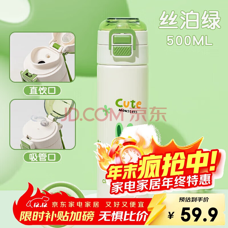 希乐保温杯316不锈钢大容量双饮杯男女学生儿童户外便携吸管杯(49.1元)